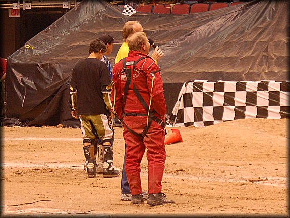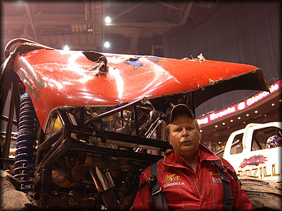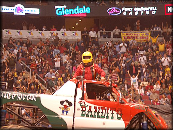 Once the Racing Competition was over, the announcer interviewed Don King about his wild ride in el Bandito. Dad was also able to get a picture of Don with the busted up truck during intermission.
