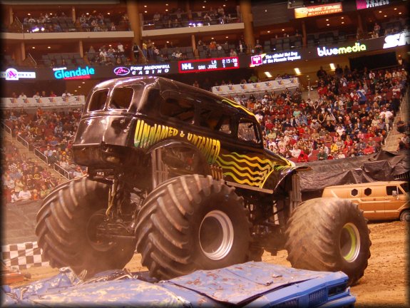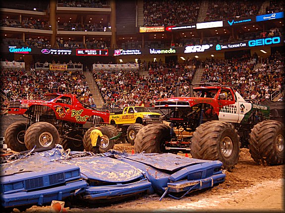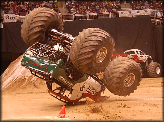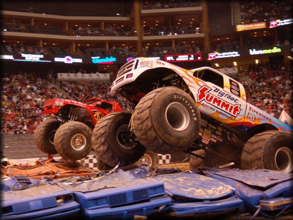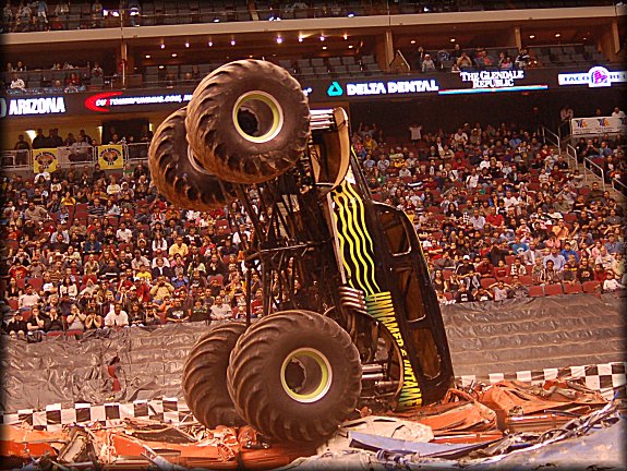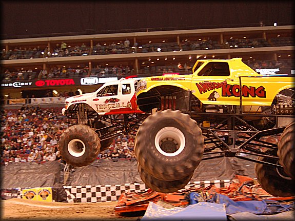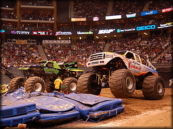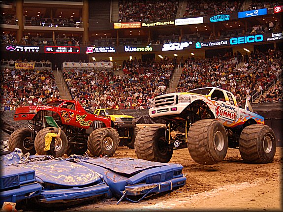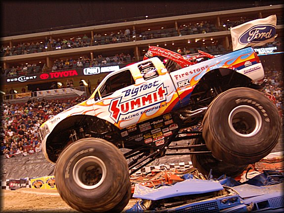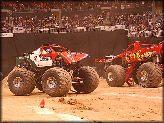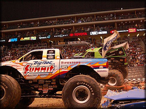 Well, the legendary Final Round match-up was set, it would be the classic Bigfoot vs. Bearfoot battle for the Racing win in Glendale. In continuing the game of musical chairs, it was Don King taking the wheel behind Bearfoot once again for the Final Round. Dan Runte got the jump on the start, but Don King was charging hard. Runte barely edged out King at the line, while King had to do some fancy driving to get Bearfoot back under control, after a strange bounce. Your Racing Champion in Glendale is Dan Runte in Summit Bigfoot!!