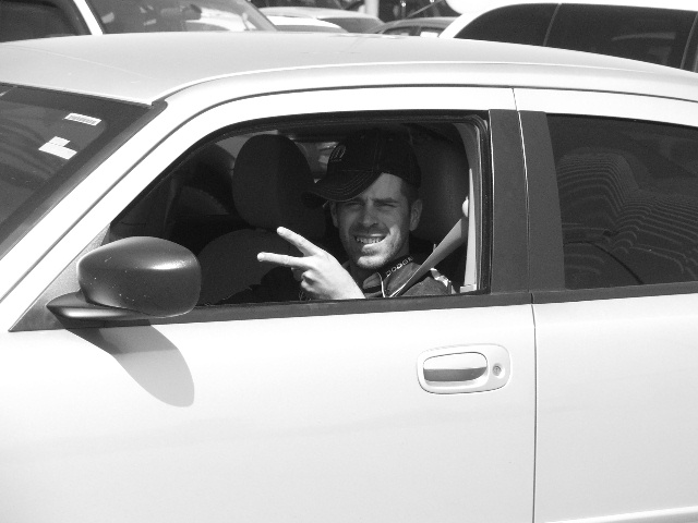 dealership parking lot in search of the exit so he can go to Sonic and get