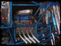 The 4-link bars were designed to allow for more adjustment and better intersect. This enhances take off and landing with improved weight transference of the truck. The Black Stallion was one of the first monster trucks to use bypass shock technology when it was introduced 14 years ago. The previous Stallion had custom built shocks by Michael Vaters. Mike wanted input on the shocks for the new truck so he worked with Brett King of King Shocks and had custom shocks fabricated to his specification. The shocks are 4” in diameter, provide 26” of travel and have 1” bypass tubes in various locations on the shock which will allow 180 degree adjustability.