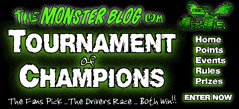 A huge thanks to all of the drivers and fans who were a part of the inaugural Tournament of Champions, and we would especially like to express our gratitude to all of the organizations who supported this contest through donation of prizes. Steve Parry will be receiving a huge package of monster truck merchandise just in time for Christmas courtesy of the organizations below. Hall Brothers Racing team will also be receiving some great prizes as well including a $100 Vinyl Images Gift Certificate, a $200 gas card, $500 Off a set of Sudden Impact Racing Tires, and 500 Custom Designed Hero Cards by the fine folks at Midland Printing! Support the folks below as thanks for their support of TheMonsterBlog.com, and maybe next year's Tournament of Champions will be even bigger! .: Thanks to the following organizations for their support of the Tournament of Champions :. October 31st, 2007 - TheMonsterBlog.com Tournament of Champions is winding to a close with only one weekend of competition left until our winners are declared! The T.O.C. was created as our way of saying thank you to all the drivers and fans who have supported The Monster Blog over the last couple years by giving each the chance to win some great prizes. The final event is being held tomorrow night in Montreal, Quebec! - Driver Competition Down to a Two-Man Race The Driver Competition has been intense for the entire eleven weeks to date, with over fifty drivers participating in T.O.C. events. Thirty-five drivers have scored performance points, and with only one more weekend of competition left, the title fight has been narrowed to two drivers. One driver had stood above the rest for the duration of the Tournament leading into last weekend’s event in Nashville. It was no surprise to find that driver was none other than legendary Bigfoot driver Dan Runte. Starting the first weekend out at Clash of the Titans, Runte maintained his spot at the top of the heap through consistent performances including big racing wins in Salt Lake City, Dallas, Phoenix, and Las Vegas. Runte even picked up a freestyle win in Memphis, giving him a total of 127.5 points. But entering last weekend right on Runte’s heels was Mark Hall and the Raminator team. Hall reached the 6-event baseline in style, winning the racing competition in Kentucky to move into second overall in the standings. Hall picked up big racing victories in Charlotte, Indianapolis, and Wildwood for an overall total of 110 points going into the Week 12 event in Nashville. Hall’s only chance to surpass Runte was to win the racing competition against a tough field of 18 of the best trucks in the country. Runte exited in the second round of racing and failed to score any T.O.C. points at the Nashville event leaving the door open for the Raminator team. Hall marched his way to the final round in Raminator, taking on Doug Noelke in Tail Gator. After a bobble early in the race, Hall came back for an incredible final round victory in Nashville, earning enough points to surpass Runte with a final total of 130 points! Now only one other driver has a chance at being the first ever Tournament of Champions winner. That driver sits in fourth place and is now in contention for the title after coming on strong late in the Tournament. That driver is Jim Koehler and his Avenger machine. Koehler scored a freestyle win early in the Tournament in Texas, but it wasn’t until Week 9 in Joliet that Avenger began making the move forward. In Joliet Koehler took the freestyle win and made it to the semi-finals in racing. In Memphis Avenger swept Saturday night, winning racing and freestyle to move into the fourth position overall in the Tournament. Koehler had to take a win in Nashville to remain in contention, and he did just that, topping the competition and walking away with the freestyle victory. Koehler now has 95 points total and a chance at the title as he will be competing in the final T.O.C. event this weekend in Montreal. Sitting at a thirty-five point deficit from leader Mark Hall, Koehler faces a tall task at Olympic Stadium Saturday night. He must win freestyle and make it to the finals in racing to earn enough points to overtake Hall and Raminator. With only one event remaining in the Tournament of Champions, Jim Koehler and the Avenger team are in control of their own destiny—they must make it to the finals in racing and win freestyle to be the Tournament of Champions winners. Mark Hall and the Raminator can now only wait, after doing their part last weekend in Nashville. Despite leading the way the entire competition, Dan Runte and the Bigfoot 4x4 team can only look ahead until next year’s T.O.C. - Fan Competition Wide Open Heading into the final event in Montreal this weekend, there are still eight fans in the running for a monster truck fan’s dream prize package! The primary contenders are the top three fans however, with fan teams Rambo Race Team, West Coast Racing, and Dan’s The Man Racing separated by a mere 16 points. Steve Parry’s Rambo Ram Team sits in first place leading Pablo Gutierrez’s West Coast Racing by a margin of only 2 points! From all accounts, the Fan Competition has been a huge success, drawing rave reviews from fans who have participated and great prizes from teams looking to give back to the fans. Best of luck to the Top 8 in this weekend’s final event! - Even More Fan Prizes Added As if the fan prize wasn’t BIG enough, three more organizations have kicked in gear for the Grand Prize! David Kranak and the gang over at MonsterTruckCollectors.com have donated a T-shirt, while Clive Featherby’s KC’s Fireworks from Australia has also gotten in on the action with a DVD and hat. Dan & Chris Patrick were also kind enough to throw in some Samson merchandise as well. - Thank You To The Sponsors The Tournament of Champions has been a hugely successful promotion and we sincerely thank everyone who has gotten involved. The sponsors who have stepped up to give bac